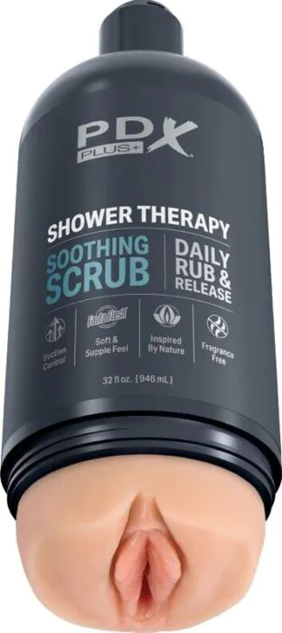 Ρεαλιστική αίσθηση και διακριτικότητα συγχρόνως με το αυνανιστήριο PDX PLUS+ Shower Therapy, που μοιάζει με μπουκάλι σαμπουάν. Κατασκευασμένο από TPE, προσφέρει μια υπερρεαλιστική αίσθηση που προσομοιώνει τη φυσική αίσθηση, ενώ οι προεξοχές στον εσωτερικό σωλήνα αυξάνουν την ευχαρίστηση. Με μήκος εισαγωγής 17,8 cm και διάμετρο 5,1 cm, είναι άνετο για τους περισσότερους.