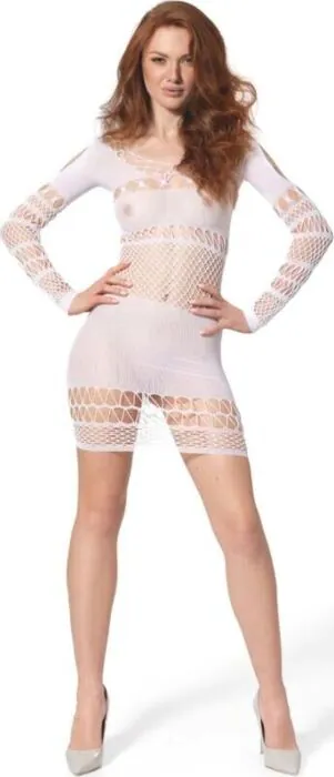 Αναδείξτε τη θηλυκότητά σας με το bodystocking BS 105. Ιδανικό για γυναίκες που εκτιμούν τον συνδυασμό κομψότητας και παιχνιδιάρικου στυλ.