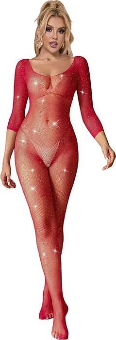 Ένα bodystocking που συνδυάζει κομψότητα και άνεση χάρη στον σχεδιασμό του από δίχτυ με διαμάντια. Εφαρμογή που αγκαλιάζει, αν και η χρήση του μπορεί να μην είναι η πιο διακριτική για όλους. Ιδανικό για όσες αναζητούν μια τολμηρή πινελιά στην εσώρουχά τους.