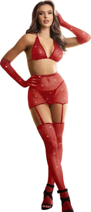 Μια τολμηρή και σαγηνευτική εμφάνιση που συνδυάζει την κομψότητα και την άνεση. Αυτό το bodystocking από δίχτυ με σχέδιο διαμαντιού και ταιριαστά γάντια θα σε κάνει να νιώθεις ακαταμάχητη. Με ύφασμα 88% νάιλον και 12% σπάντεξ, προσαρμόζεται άνετα σε διαφορετικές σιλουέτες.