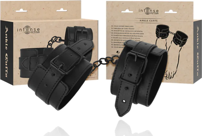 Άνετη και ασφαλής περιοριστική εμπειρία με τις χειροπέδες INTENSE FETISH από vegan δέρμα. Ο εργονομικός σχεδιασμός τους προσφέρει τέλεια εφαρμογή στους αστραγάλους, αναβαθμίζοντας το παιχνίδι σου χωρίς συμβιβασμούς στις αξίες σου.