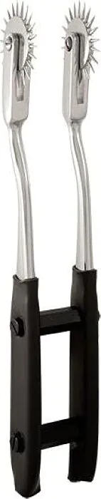 Διπλή ηλεκτροκίνητη ρόδα που προσφέρει ισχυρές και έντονες αισθήσεις, αποτελούμενη από επαφές από ασημένιο ορείχαλκο και ακρυλικές λαβές. Συνδέεται σε έναν διεγέρτη ElectraStim, επιτρέποντας την αύξηση της ευαισθησίας του δέρματος και τη διάρκεια της απόλαυσης κατά τη διάρκεια των παιχνιδιών σας.