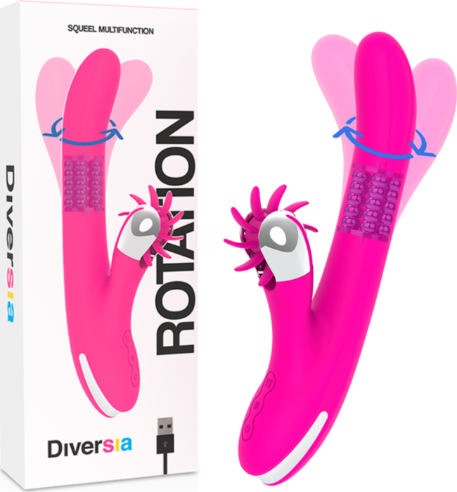 Διπλή διέγερση κλειτορίδας και σημείου G με 7 τρόπους περιστροφής. Ο Δονητής Diversia Bunny Rotation διαθέτει δύο ισχυρούς κινητήρες και είναι κατασκευασμένος από υπερ-μαλακή σιλικόνη, παρέχοντας μια μοναδική αίσθηση κατά τη διάρκεια της χρήσης.