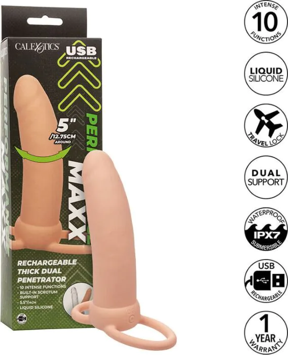 Ικανότητα για έντονη διπλή διείσδυση. Ιδανικός για εμπειρίες που απαιτούν περισσότερη δόνηση και ενίσχυση του πάχους. Ο CALEXOTICS Maxx έρχεται πλήρης με 10 λειτουργίες δόνησης.