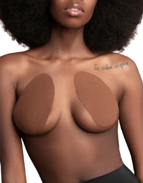 Εφαρμόστε την επένδυση θηλής πάνω από την αρεόλη και τοποθετήστε την κολλητική ταινία στο κάτω μέρος του στήθους για αποτελεσματική ανύψωση. Επαναλάβετε τη διαδικασία στο άλλο στήθος. Για καλύτερη πρόσφυση, βεβαιωθείτε ότι το δέρμα είναι καθαρό και στεγνό πριν από τη χρήση.