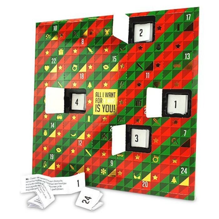 Μια δυνατή δόση πάθους κάθε μέρα! Το Ημερολόγιο Ευχαρίστησης σας προσκαλεί σε 24 ημέρες γεμάτες προκλήσεις που αναζωπυρώνουν την ερωτική σας φαντασία. Κάθε πόρτα κρύβει μία ερωτική πρόκληση, από αισθησιακά μασάζ μέχρι παιχνίδια ρόλων. Στις 24 προκλήσεις, όλη η μαγεία του πάθους γίνεται αναγκαία για μια αξέχαστη Χριστουγεννιάτικη εμπειρία.