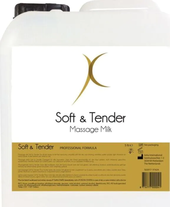 Απαλή και ευχάριστη αίσθηση με την κρέμα μασάζ Soft and Tender 5000 ml. Η σύνθεσή της επιτρέπει χρήση σε κάθε τύπο δέρματος χωρίς ερεθισμούς και καθαρίζει εύκολα με νερό.