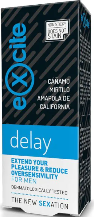 Η ανακούφιση και η παράταση των ερωτικών στιγμών είναι εδώ με το Excite Delay. Το gel αυτό συνδυάζει φυσικά εκχυλίσματα με αναζωογονητική δράση που μειώνει την ευαισθησία. Απόλαυσε τη μαγεία μιας πιο διαρκούς εμπειρίας χάρη στη δοκιμασμένη του σύνθεση. Σημαντική επιπλέον πληροφορία: είναι κατάλληλο για εξωτερική χρήση και η φόρμουλα του είναι υγειονομικά ελεγμένη.