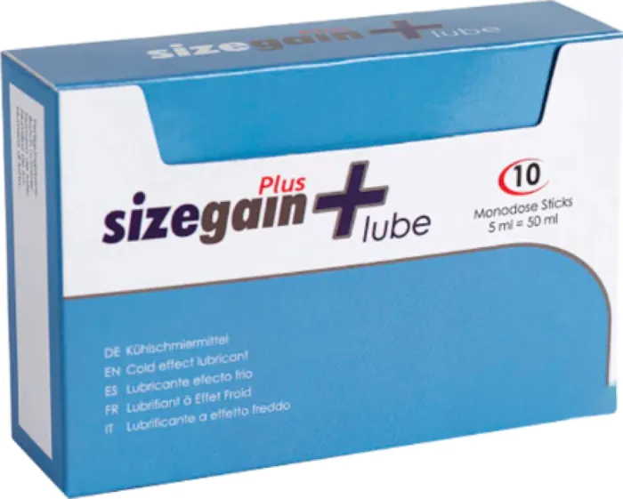 Δροσερή αίσθηση και άμεση βοήθεια στην ευχαρίστηση με το λιπαντικό monodose Sizegain Plus. Η φόρμουλα του περιέχει νερό και προσφέρει άφθονη λίπανση χωρίς λιπαρούς υπολείμματα, ιδανικό για να εφαρμόζεται απευθείας στο πέος και να ενισχύει την ευαισθησία του.