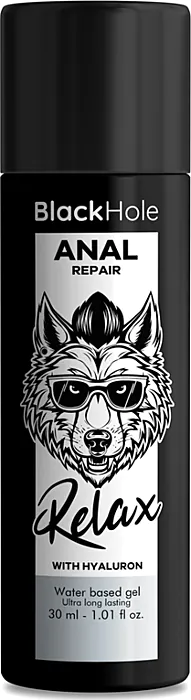 Ανακουφιστική δράση για άνετη πρωκτική διείσδυση με το λιπαντικό Black Hole Anal Repair. Ο συνδυασμός υαλουρονικού οξέος και υδάτινης βάσης παρέχει την ιδανική ενυδάτωση και μια μη λιπαρή υφή για αβίαστη χρήση.
