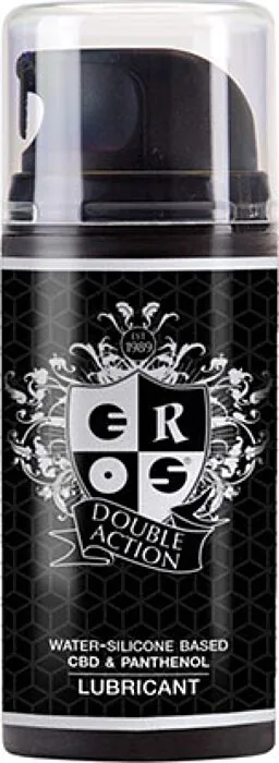 Αυξημένη διάρκεια και αίσθηση ενυδάτωσης με το Eros Double Action, το οποίο συνδυάζει νερό και σιλικόνη με CBD. Το προϊόν προσφέρει ομαλή και μη λιπαρή εφαρμογή, ιδανικό για κάθε είδους άγγιγμα.