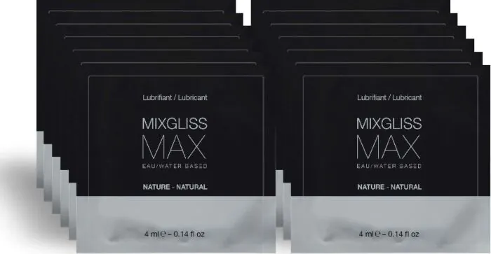 Ανακαλύπτετε μια ευχάριστη και άνετη αναλυτική εμπειρία με το λιπαντικό MIXGLISS Max. Η μοναδική του φόρμουλα διευρύνεται, προσφέροντας άριστη λιπαντικότητα ώστε η διείσδυση να είναι πιο άνετη. Ερχεται σε πρακτική συσκευασία 12 μονάδων των 4ml, εύκολο προς μεταφορά και χρήση οποιαδήποτε στιγμή.