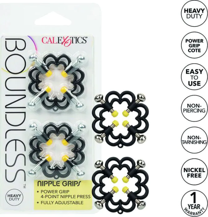 Ενδυνάμωση του παιχνιδιού BDSM με τις πινακίδες θηλών Boundless από την CALEXOTICS. Ειδικά σχεδιασμένες για να προσφέρουν προσαρμόσιμη πίεση, αυτές οι πινακίδες αυξάνουν την αίσθηση και την απόλαυση σε κάθε επαφή. Κατασκευασμένες από ανθεκτικό μέταλλο, παρέχουν ένα ισχυρό κράτημα που αναβαθμίζει κάθε στιγμή.