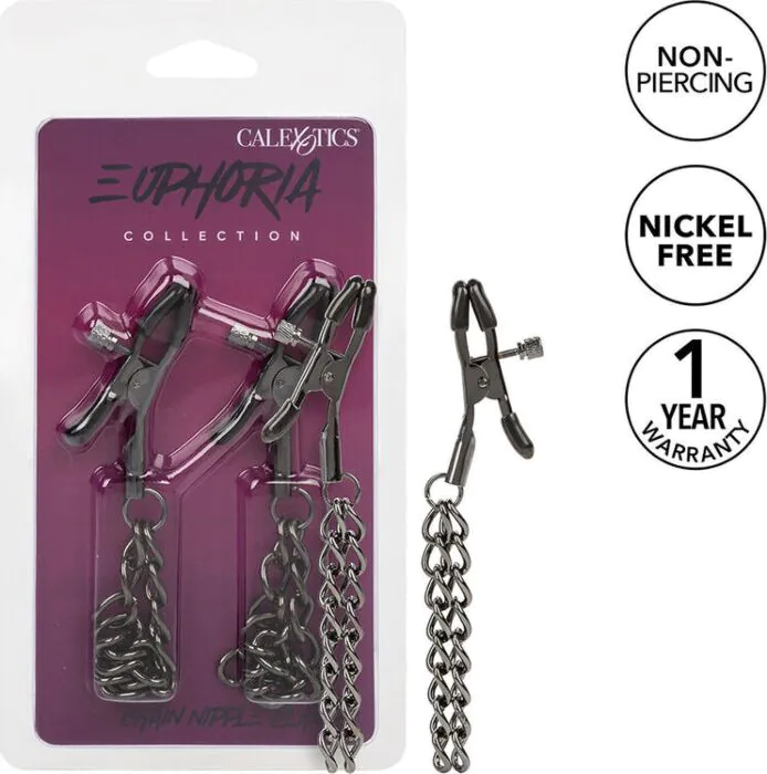 Εντατική διέγερση με απόλυτη άνεση και προσαρμογή. Οι πιντσες πεζονων CALEXOTICS EUPHORIA είναι φτιαγμένες από μέταλλο χωρίς νικέλιο και διαθέτουν μαλακές επενδύσεις που παρέχουν άνετη αίσθηση κατά τη χρήση. Η διπλή αλυσίδα προσθέτει ένταση και ενθουσιασμό σε κάθε κίνηση, ενισχύοντας τη σεξουαλική σας εμπειρία.