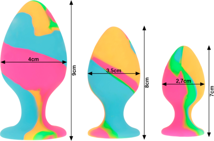 Άνετη και διαισθητική αναλογική διέγερση με τρία διαφορετικά μεγέθη από μαλακή σιλικόνη. Η κωνική του μορφή εξασφαλίζει εύκολη και ομαλή εισαγωγή. Οι διαστάσεις των plugs κυμαίνονται από 2.7 cm έως 4 cm διαμέτρου για άνεση και ευχάριστη αίσθηση.
