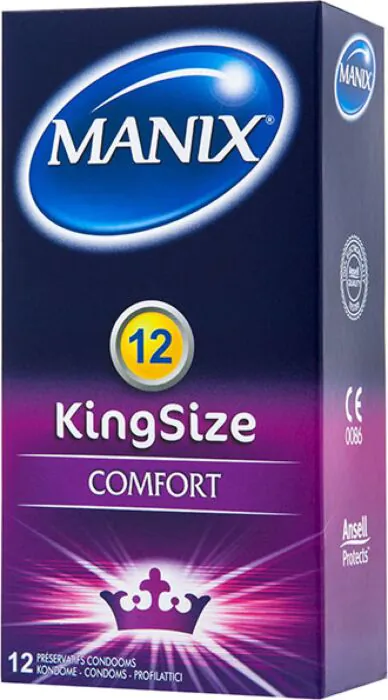 Τα προφυλακτικά Manix King Size προσφέρουν άνεση σε όσους βρίσκουν τα κανονικά προφυλακτικά στενά. Είναι λιπαρά και έρχονται με γλυκιά μυρωδιά βανίλιας.