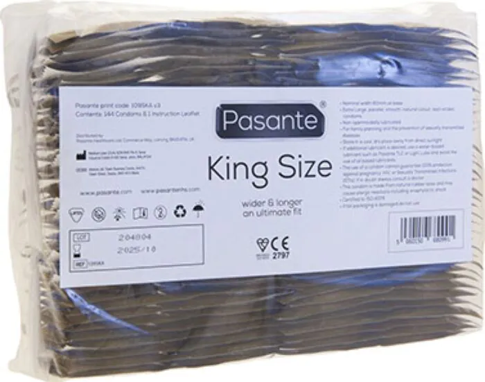 Προφυλακτικό King Size από τη Pasante, σχεδιασμένο για τους χρήστες που χρειάζονται μεγαλύτερη άνεση και χώρο. Ιδανικό για μεγαλύτερους όγκους.