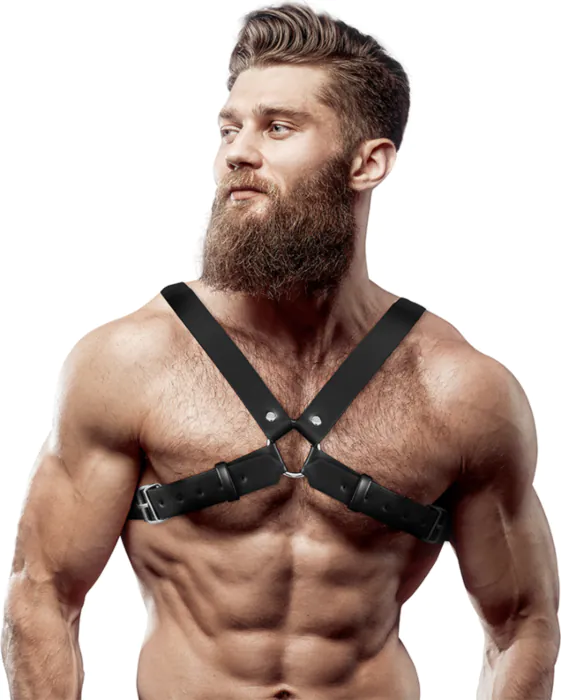 Αυτή η ρυθμιζόμενη πρόσδεση προσφέρει σέξι εμφάνιση και αίσθηση άνεσης. Κατασκευασμένη από υψηλής ποιότητας vegan δέρμα, προσαρμόζεται εύκολα σε όλους τους σωματότυπους, αναδεικνύοντας την ανδρική φιγούρα με αυτοπεποίθηση.