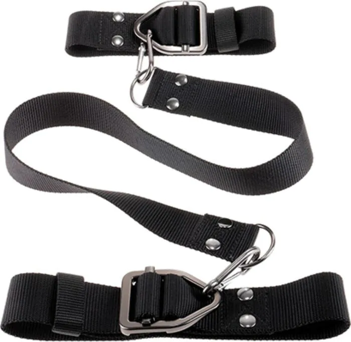 Ασφάλεια και ευχάριστη αίσθηση κατά τη διάρκεια των παιχνιδιών BDSM με αυτό το σετ δεσμών από νάιλον αντοχής. Διαθέτει καραμπίνες που σας επιτρέπουν να δένετε τα καρπούς και τους αστραγάλους με άνεση και σταθερότητα.
