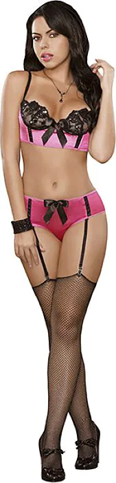Αίσθηση κομψότητας και αισθησιασμού με το σετ εσωρούχων Exposed Sequin Lace. Ο συνδυασμός δαντέλας και σατέν προσφέρει μια ελκυστική εμφάνιση που τονίζει τη γυναικεία σιλουέτα. Διαθέτει μικρό κορσέ που προσαρμόζεται άνετα χάρη στον λεπτό σχεδιασμό του.