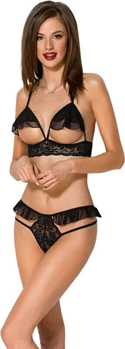 Ενισχύει τη θηλυκότητα με τον τολμηρό σχεδιασμό του. Το σουτιέν με ανοιχτές θήκες συνοδεύεται από ένα σέξι τanga, που μυρίζει φρεσκάδα και σύγχρονη ατμόσφαιρα. Κατασκευασμένο στην ΕΕ με ποιοτικά υλικά, είναι συμβατό με τη γυναίκα που μεταδίδει αυτοπεποίθηση και ελκυστικότητα.