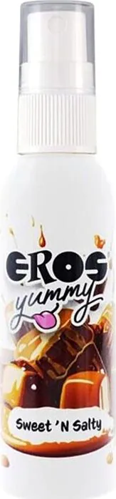 Με το σπρέι Eros Yummy, κάθε φιλί μετατρέπεται σε μια γευστική απόλαυση που ενθουσιάζει. Η γεύση καραμέλας αλμυρού είναι ένας υπέροχος συνδυασμός που δεν αφήνει υπολείμματα και είναι ασφαλής για το δέρμα. Το προϊόν είναι δερματολογικά ελεγμένο και μπορεί να χρησιμοποιηθεί και με ερωτικά παιχνίδια.