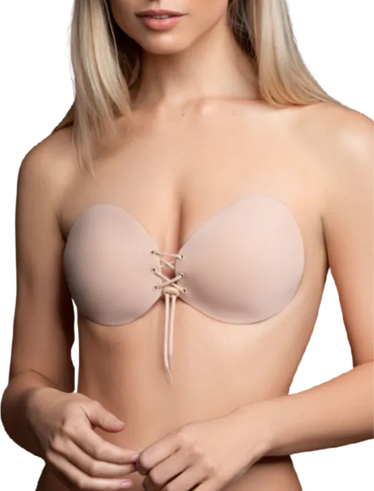 Για βέλτιστη προσκόλληση, φρόντισε το δέρμα σου να είναι καθαρό και χωρίς έλαια. Τοποθέτησε τις αυτοκόλλητες θήκες στους μαστούς και ρύθμισε το κλείσιμο μπροστά για το επιθυμητό ντεκολτέ. Μπορείς να τον χρησιμοποιήσεις μέχρι 25 φορές.